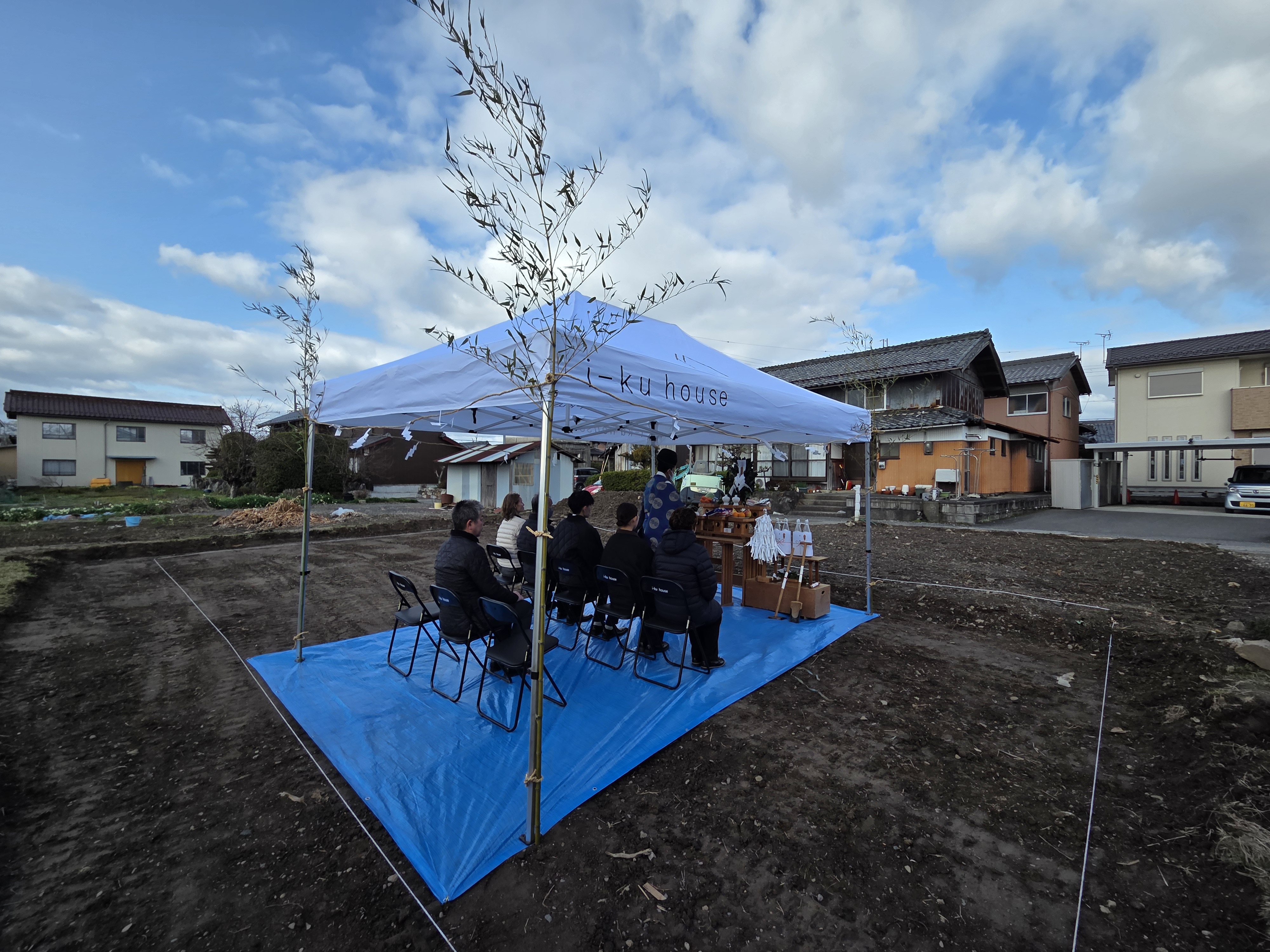 そもそも、地鎮祭はそこの土地の事故や災害なく建物が完成することを願ったり。土地の神様へのご挨拶をします。その土地を守る「氏神様」に建築の承諾を得て、土地を利用させてもらう感謝を伝えます。そして、お客様が新居での新しい生活が安全で幸福なものになるよう祈ります!