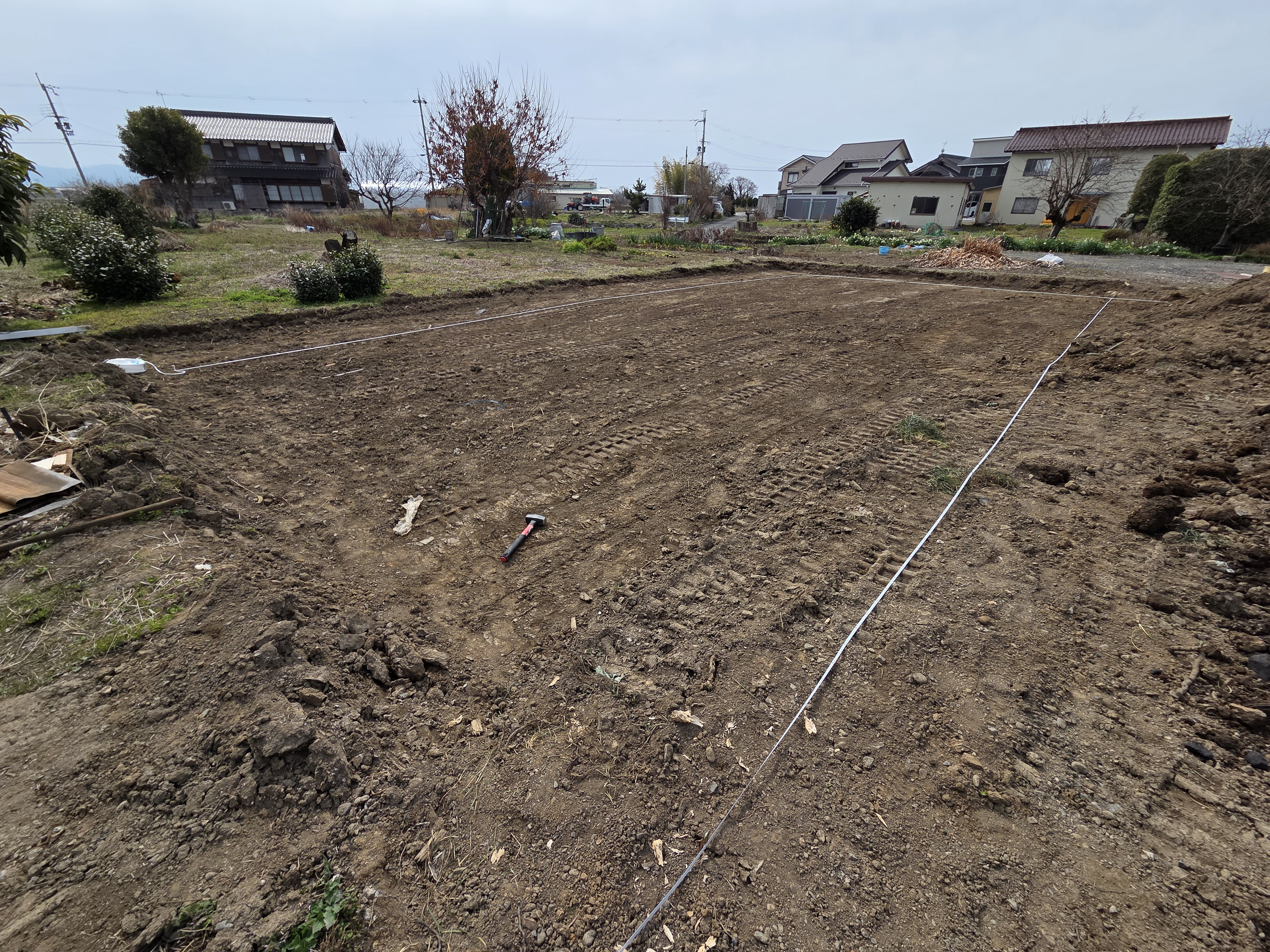 そんな中、先日、もうすぐ着工の現場の地縄張りをしてきました!