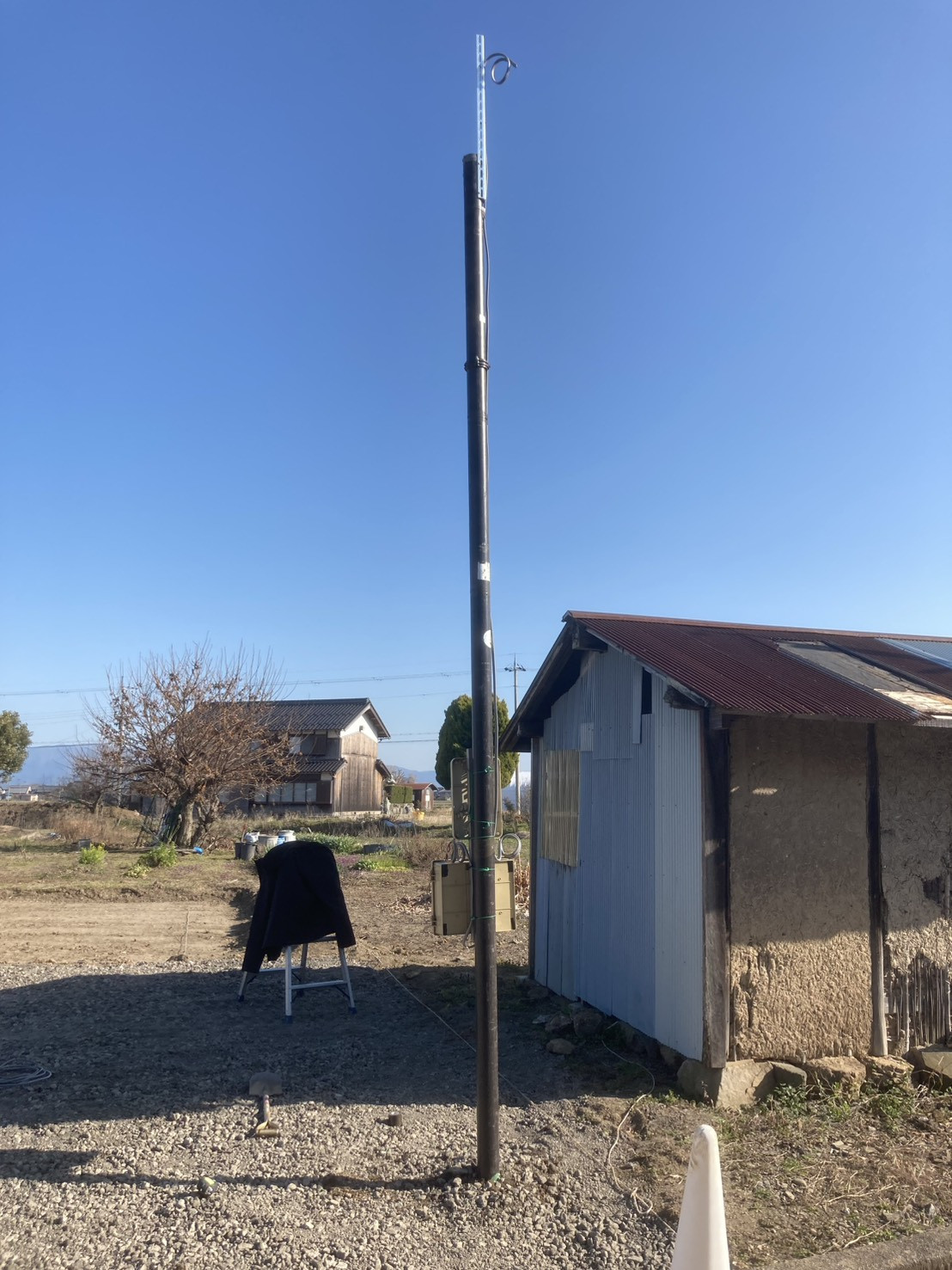 先日新築の現場に仮設の電気を電気屋さんに立ててもらいました!